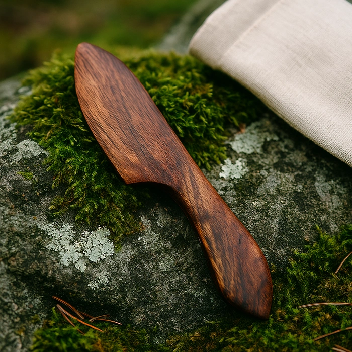 Das Kirjais ist ein handgefertigtes Buttermesser aus Lappland, geschnitzt aus wunderschön gemaserter Maserbirke. Seine ergonomische Form liegt gut in der Hand und eignet sich perfekt zum Streichen von Butter, Marmelade oder Frischkäse.