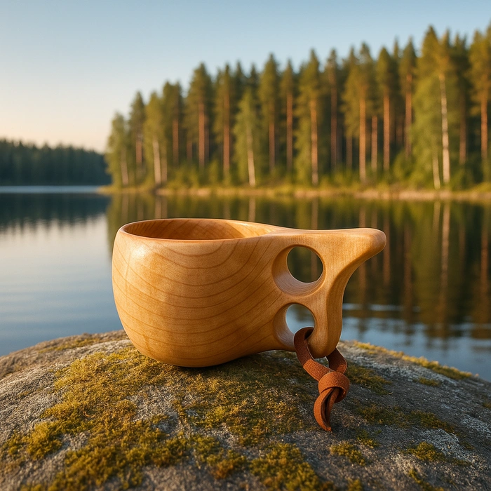 Kuukkeli è una kuksa luminosa e raffinata, pensata per chi ama il legno chiaro e l’essenzialità dell’artigianato nordico.